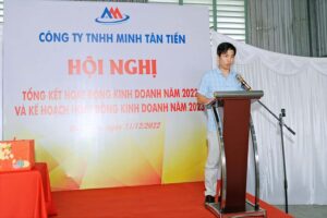 Trên cơ sở những kết quả kinh doanh đã đạt được trong năm 2022, ông Lê Minh Tân – Tổng Giám đốc công ty TNHH Minh Tân Tiến đã phân tích, đánh giá những mặt thành công cũng như những mặt còn hạn chế trong hoạt động kinh doanh của công ty trong năm qua. Dựa trên tình hình kinh tế và xu hướng phát triển chung, Giám đốc cũng đưa ra các ý kiến chỉ đạo cụ thể về việc triển khai nhiệm vụ, đưa ra mục tiêu trong tăng trưởng năm 2023 là 10% đối với doanh thu – tuy nhiên vẫn đảm bảo công tác duy trì kiểm soát, nâng cao chất lượng và tiến độ công trình.